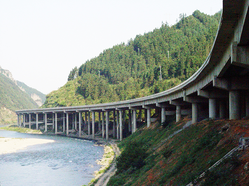 湖南省邵陽-懷化高速公路,公司承建土建工程6.32km,含洞口塘大橋(25*30 36 26 30 3*40 6*30簡支連續T梁)和洞口塘隧道一座。2005年建成。