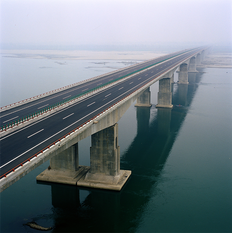 襄樊漢江四橋:主橋結構為75 5*120 75預應力砼連續箱梁,引橋40*30m先簡后支連續預應力砼T梁。全長1950米,該橋為7孔120米預應力變截面連續箱,2003年建成。