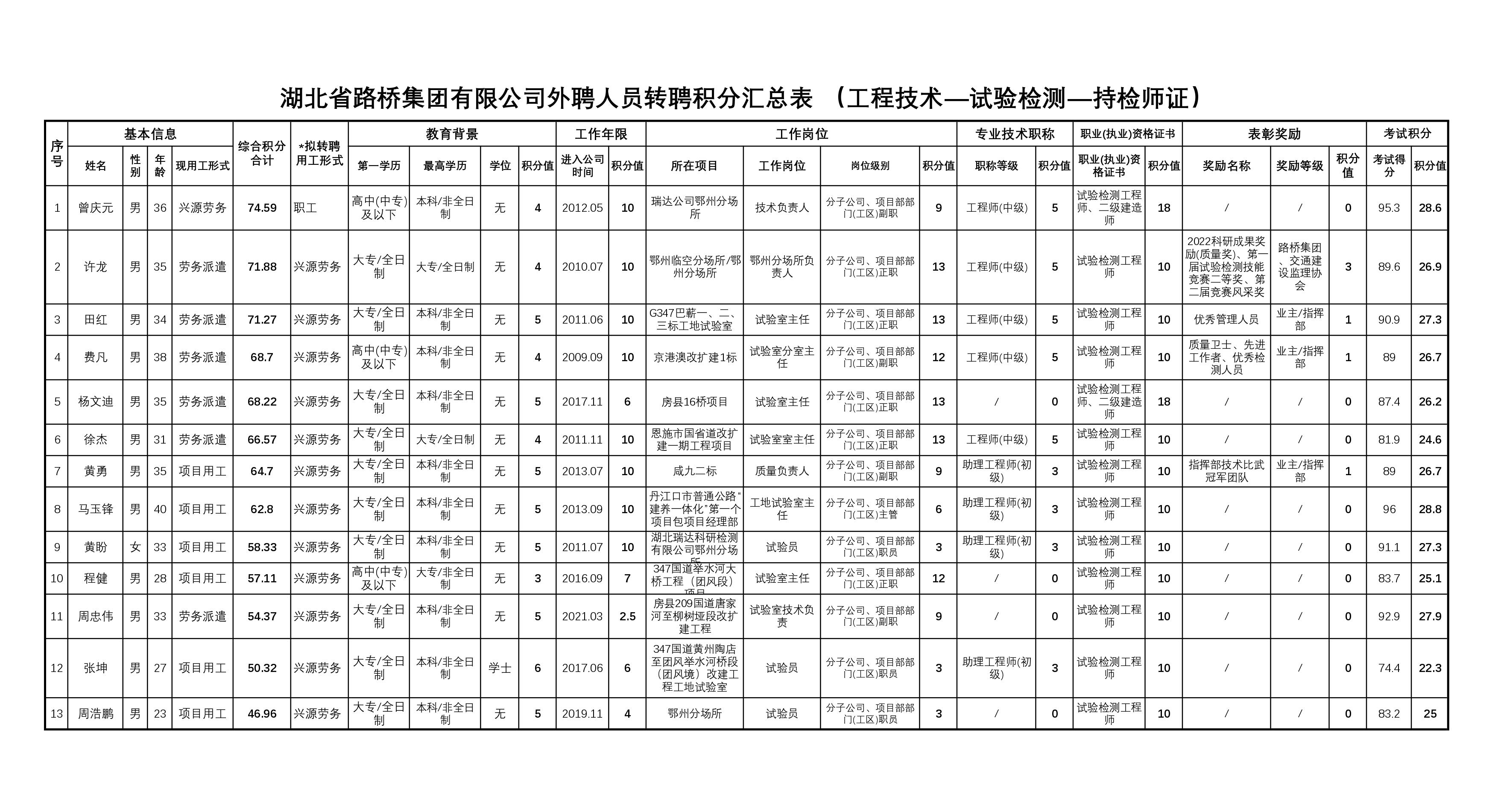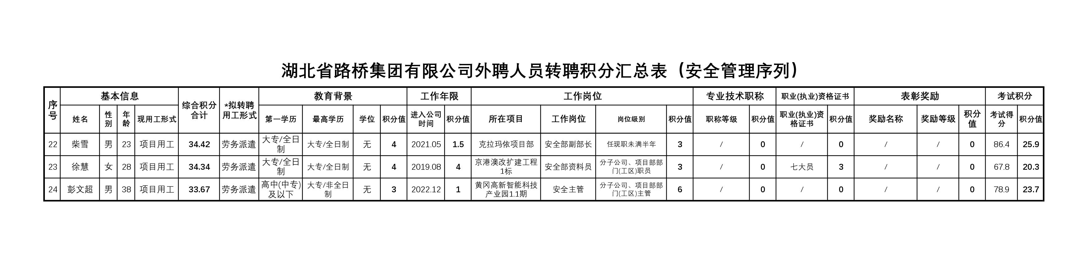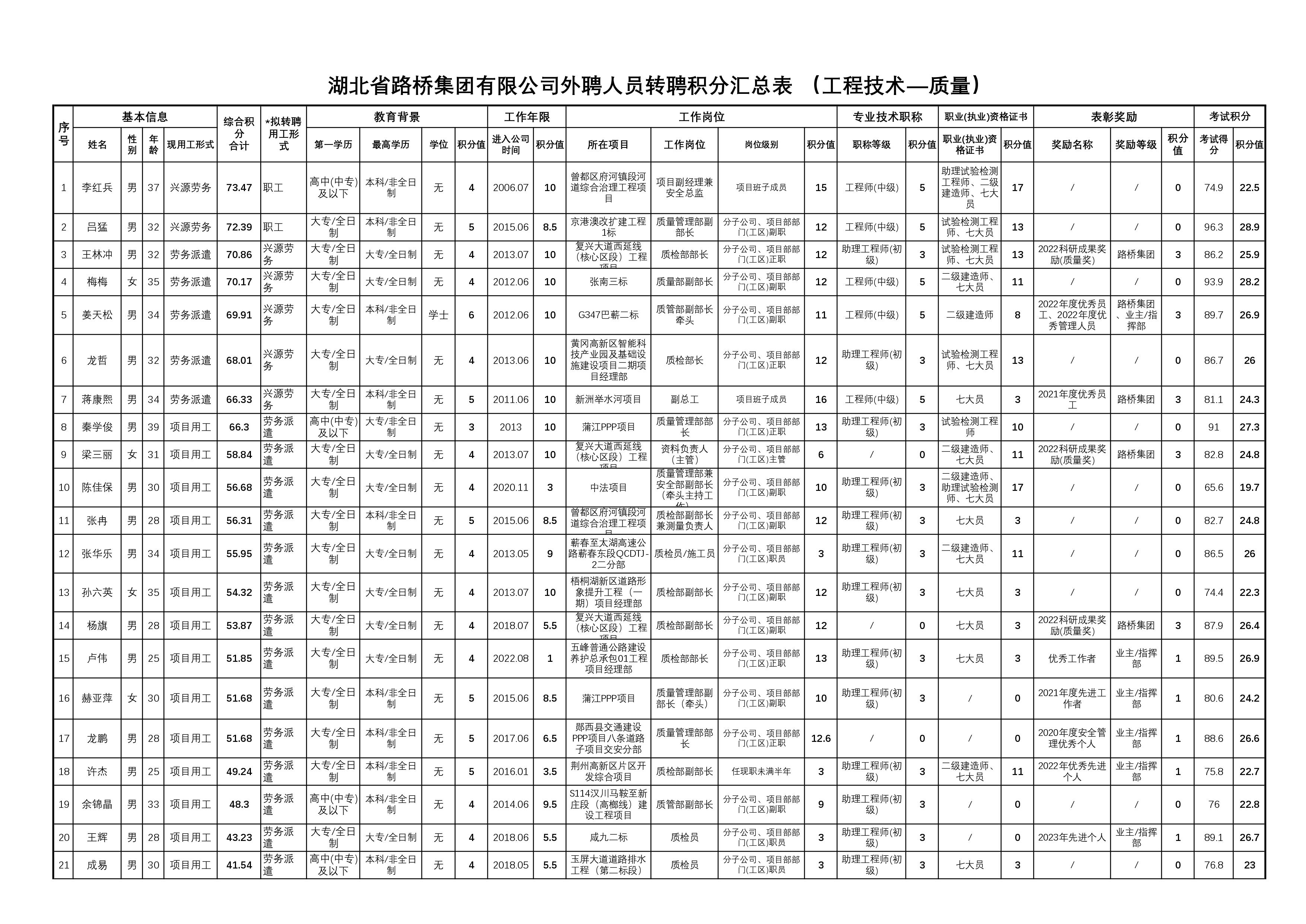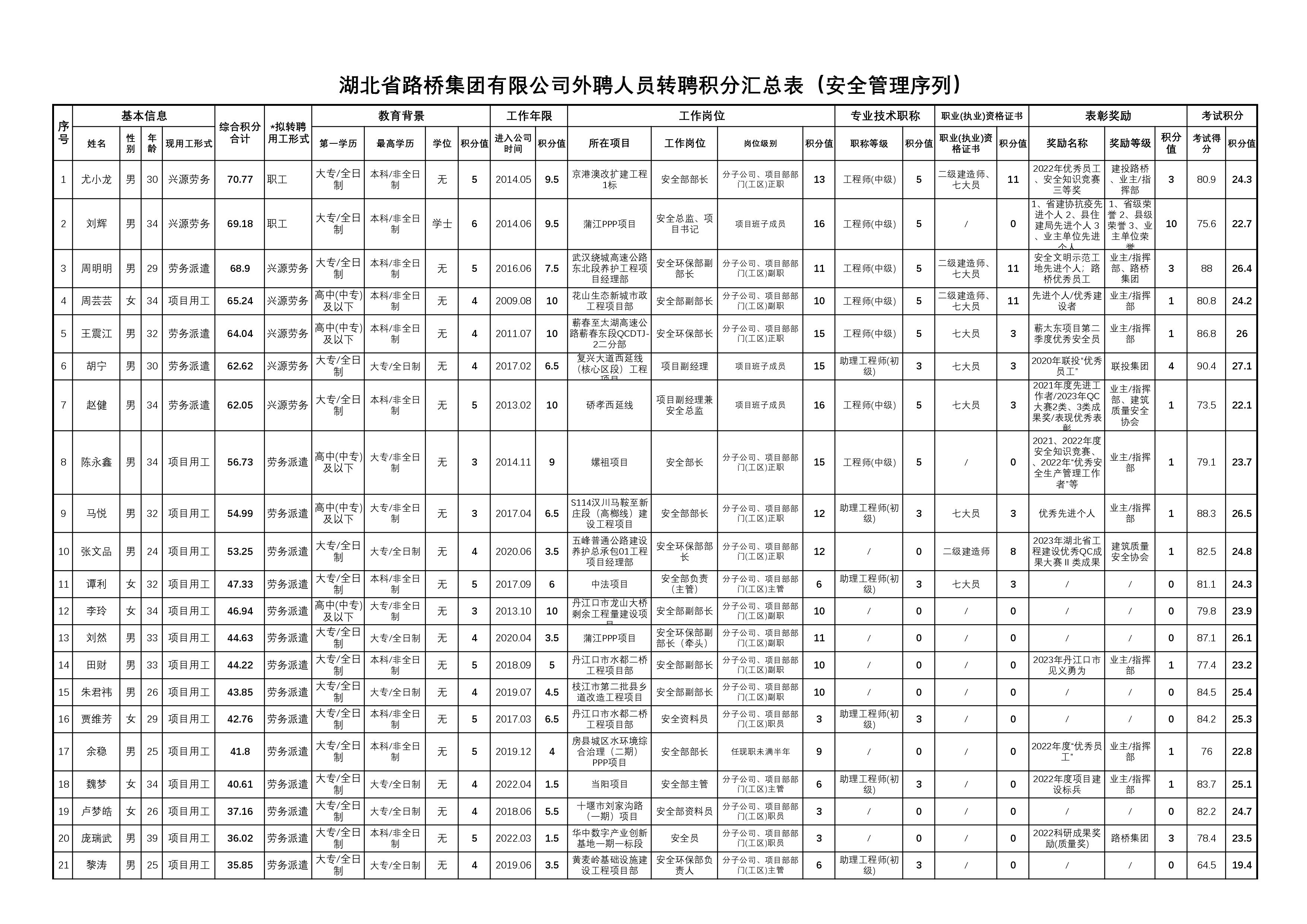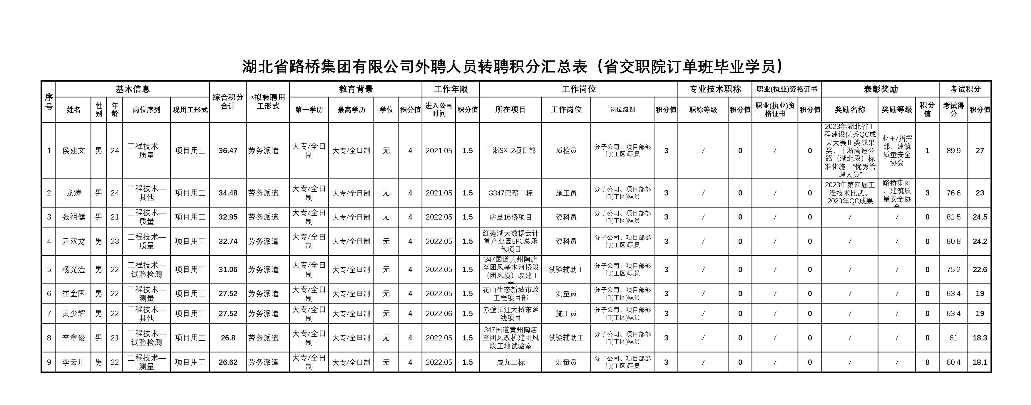 湖北省路橋集團有限公司2023年擬轉聘人員公示
