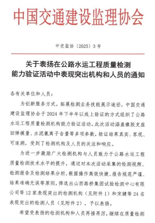 此次榮譽的獲得,是對過往成績的肯定,更是開啟新征程的號角。瑞達科研檢測公司將繼續秉承科學嚴謹、精益求精的工作態度,積極響應國家發展戰略,聚焦新技術、新工藝的研發與應用,不斷拓寬服務領域,提升服務質量。深化與業界的交流合作,共同推動檢測技術的革新與發展,為構建安全、智能、綠色的交通基礎設施體系提供堅實的技術支撐。