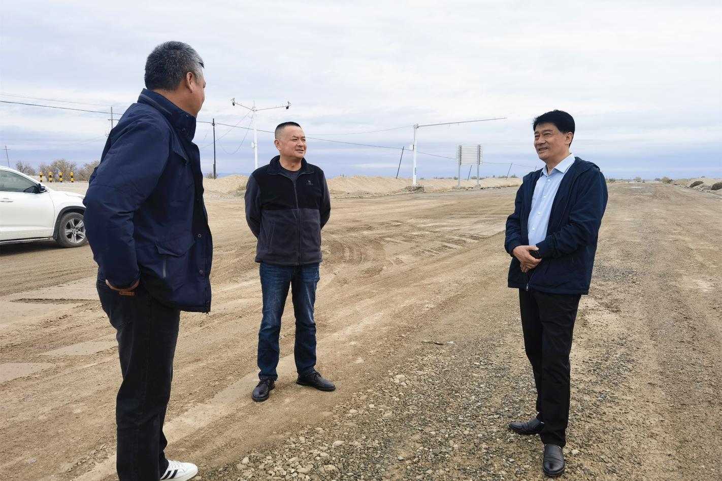 在呼圖壁項目,張保江一行深入施工現(xiàn)場,詳細了解項目路基、橋梁、涵洞、路面等施工進展情況。他強調,今年以來,新疆雨水天氣增多,呼圖壁項目建設時間緊、任務重,要在確保工程質量和施工安全的前提下,加快推進項目建設。