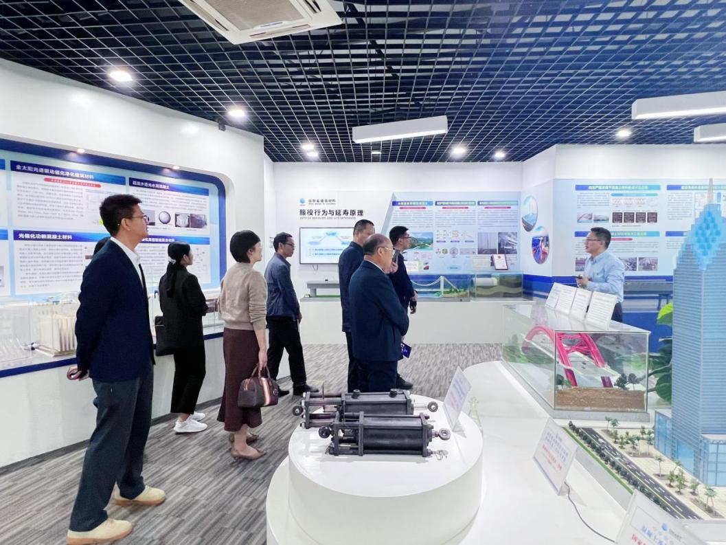 會前,武漢理工大學土木工程與建筑學院方明鏡教授帶領大家參觀“硅酸鹽建筑材料國家重點實驗室”,詳細介紹了實驗室在高性能、低環境負荷硅酸鹽建筑材料研究上的前瞻性、原創性,在支撐綠色和智能建筑體系發展以及重大工程建設建筑新材料方面的研發成果,為加快實現建材行業戰略轉型升級、保障國家重大戰略實施提供科技與人才支撐。
