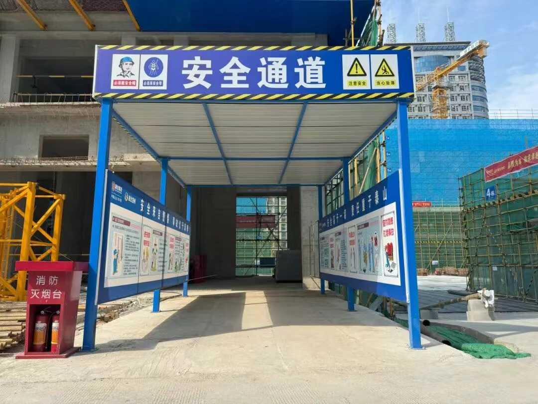 安全文明施工常抓不懈。如項目大門處設置勞務實名制通道;現場安全長廊方便工友安全通行;現場路面全硬化、建筑材料擺放有序;在進出大門的通道設置了隔音降噪洗車棚,降低運輸車輛噪音且不帶泥上路;圍擋設置智能噴淋系統、現場有移動式霧炮降塵;電梯井和臨邊處均設置防護措施;現場樣板展示區和安全體驗區,各類安全體驗、成品工序樣板和實物技術交底赫然在列.....